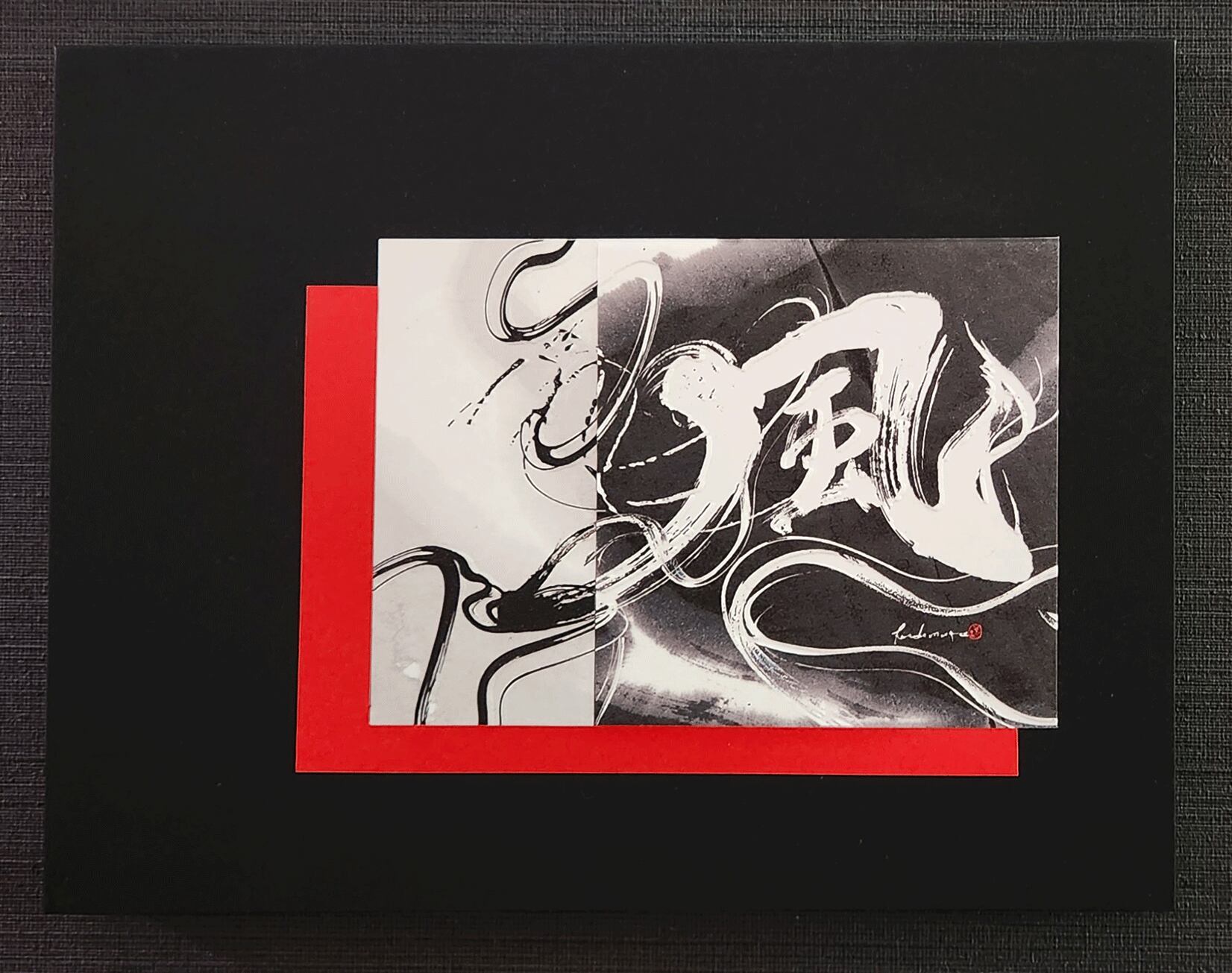 静と動、柔と剛が共存する、日本的な精神性を映し出した書道アート作品です。